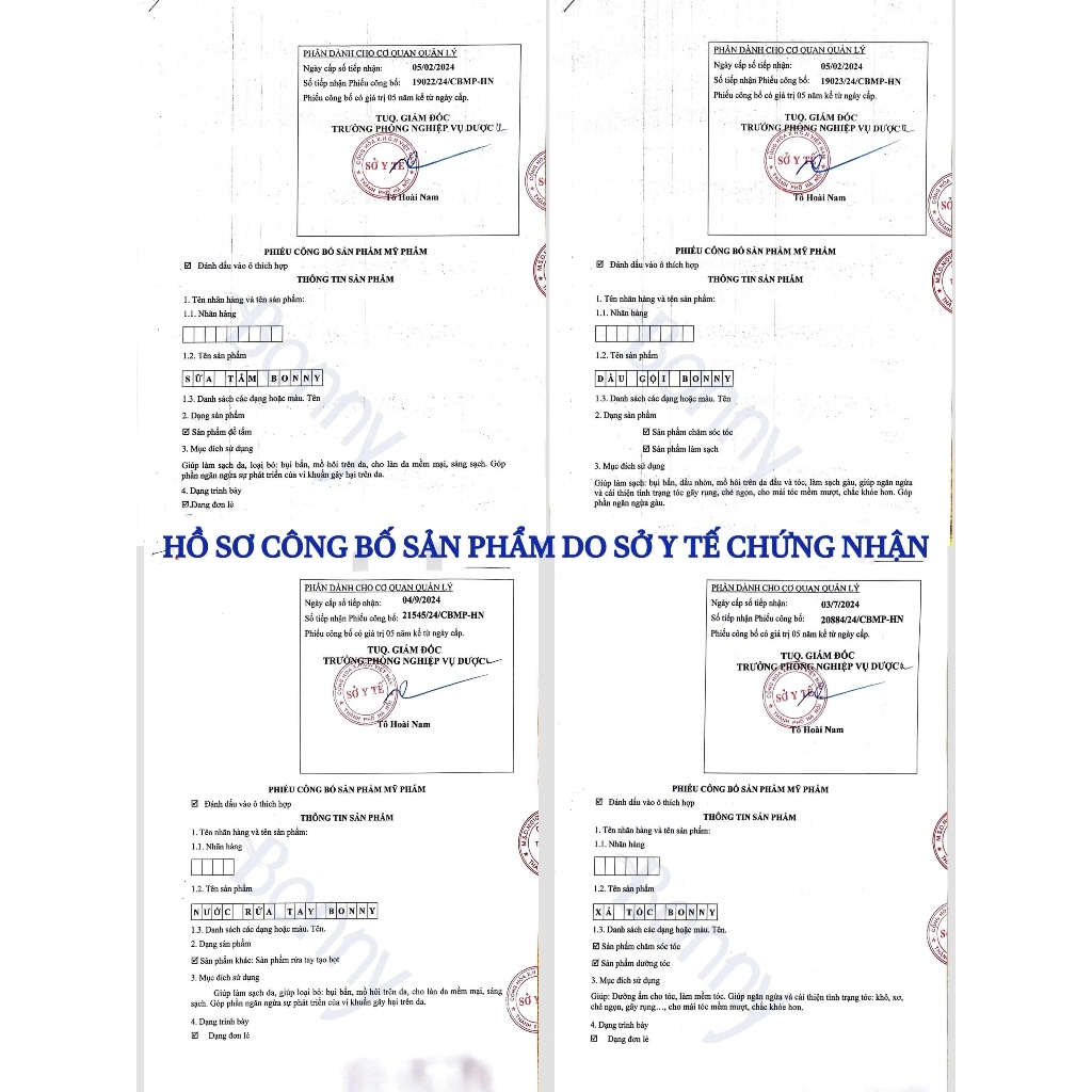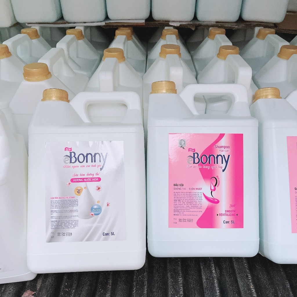 - Tên sản phẩm: Dầu gội Bonny can 5L, Sữa tắm Bonny can 5L, Dầu xả Bonny can 5L, Nước giặt Bonny can 5L, Nước lau sàn Bonny Can 5L