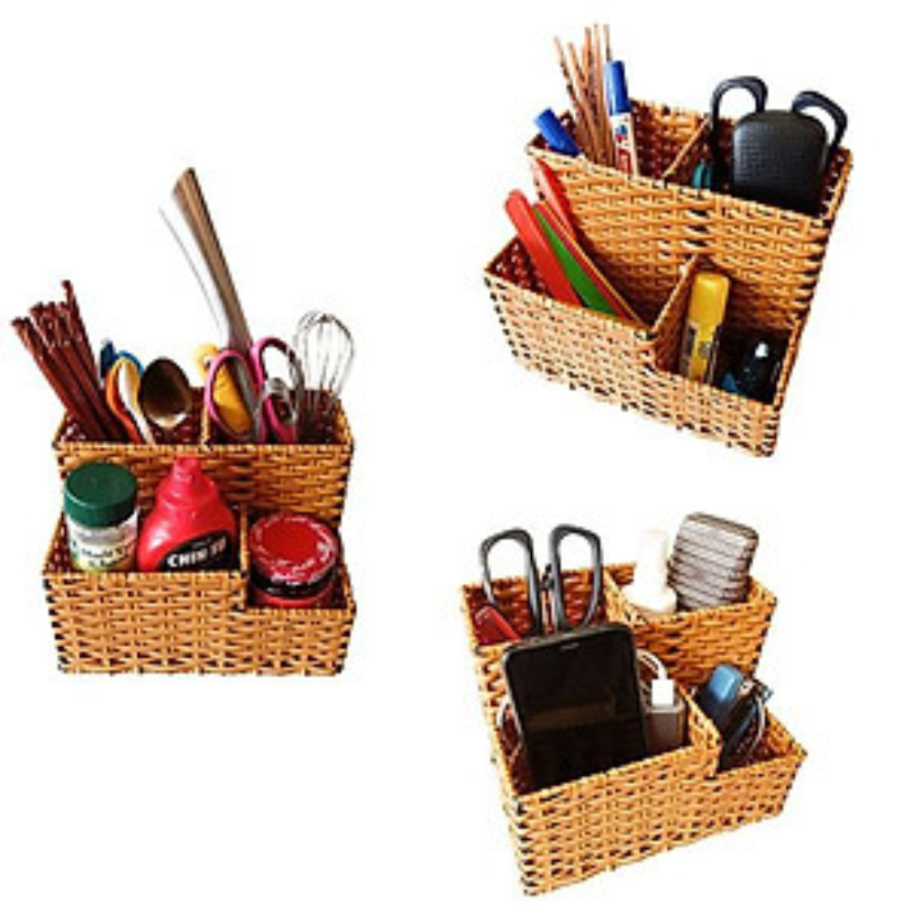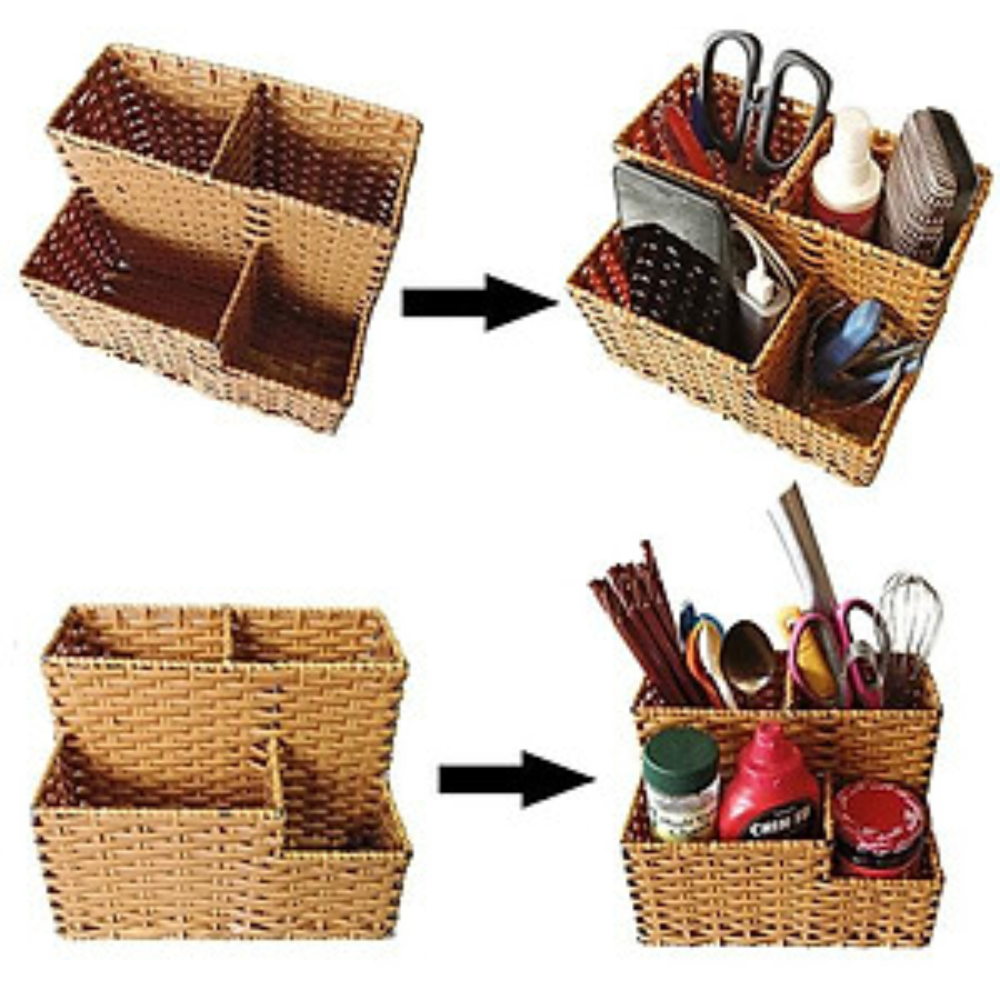Khay nhựa BONNY, Khay nhựa giả mây đựng đồ, Giỏ nhựa giả mây nhiều ngăn đa năng dùng cho nhà hàng